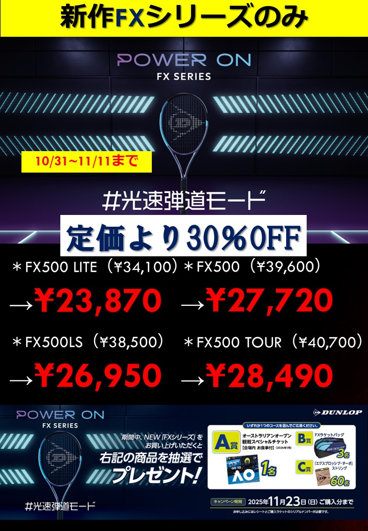 10/31~11/11の期間で新作FXシリーズのラケットが30%オフ!!